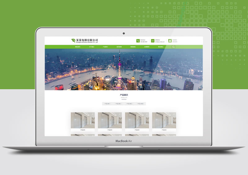 响应式电梯 五金 机械等行业通用模板 生产企业绿色企业网站模板
