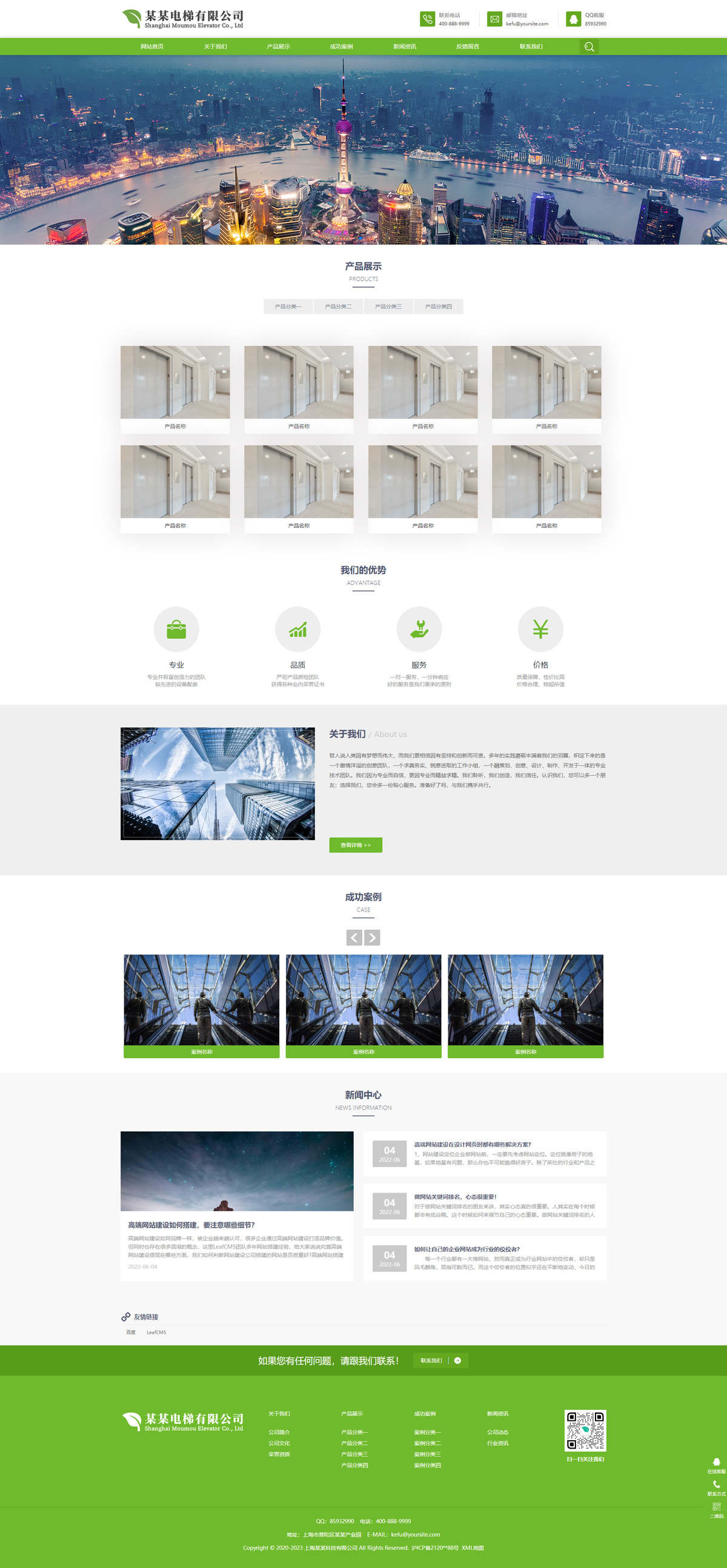 响应式电梯 五金 机械等行业通用模板 生产企业绿色企业网站模板