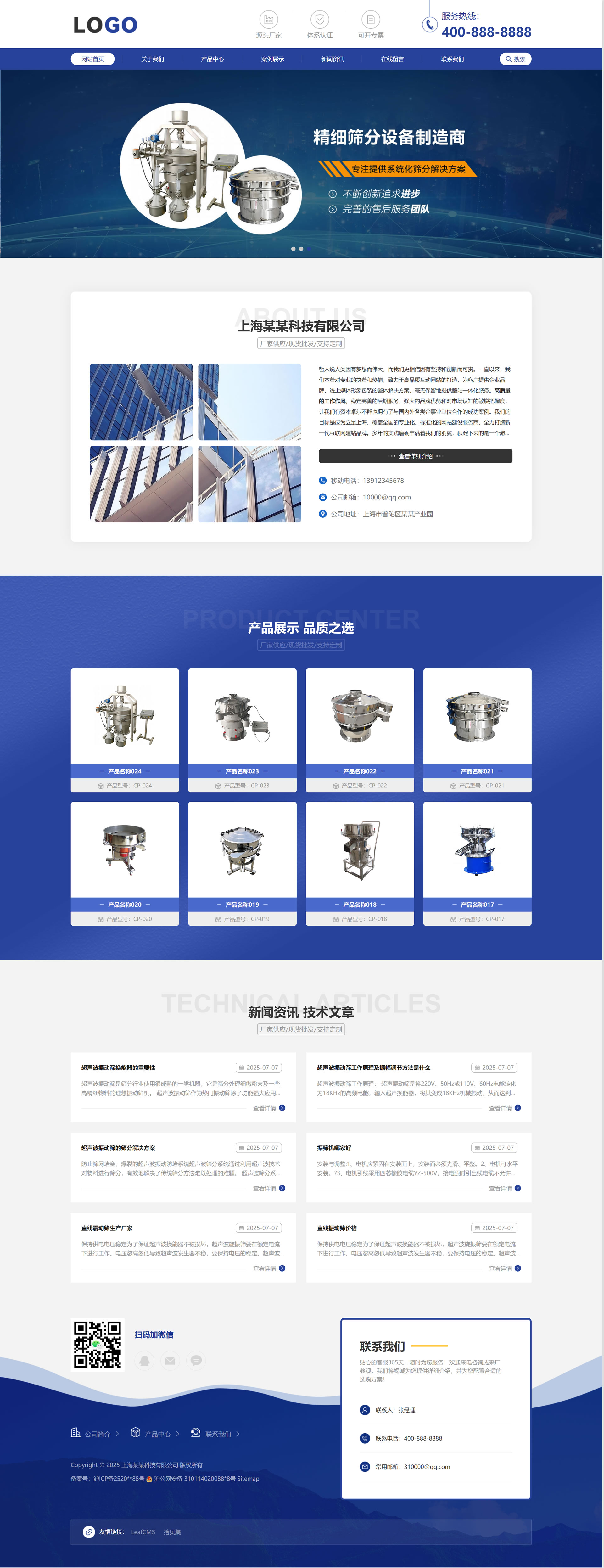 PC版 筛分设备 机械仪器 通用制造业类企业网站模板